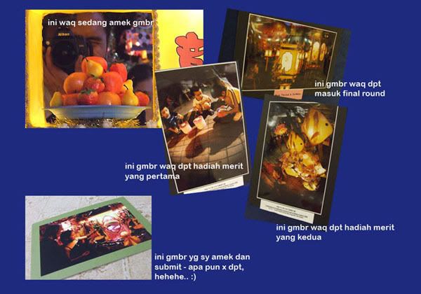 entry untuk waq. tahniah, menang 2 hadiah merit. mekaseh le belanje kitorang minum dan makan popiah ritu, hehe. lenkali bole le outing lagi :P